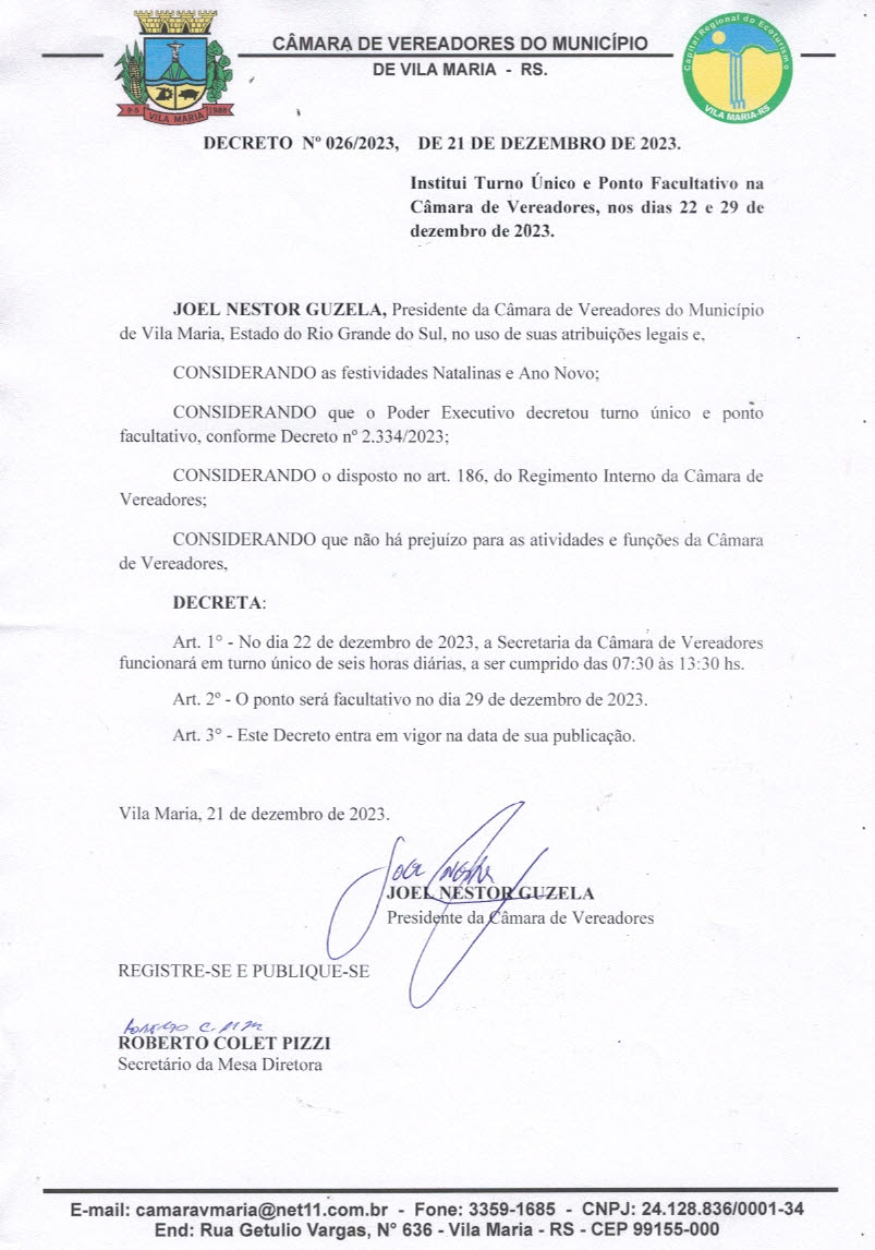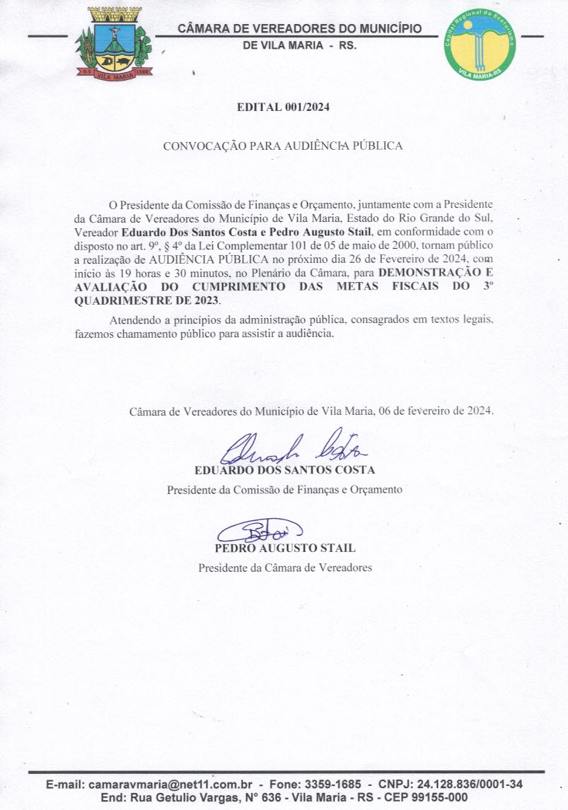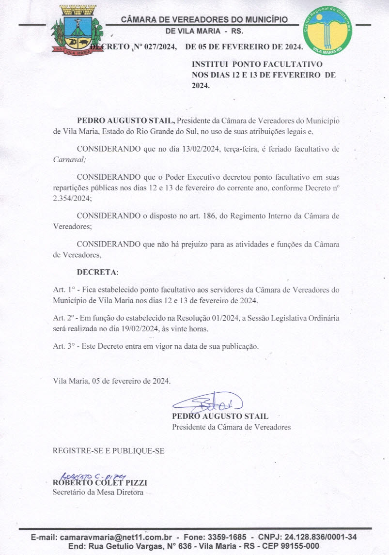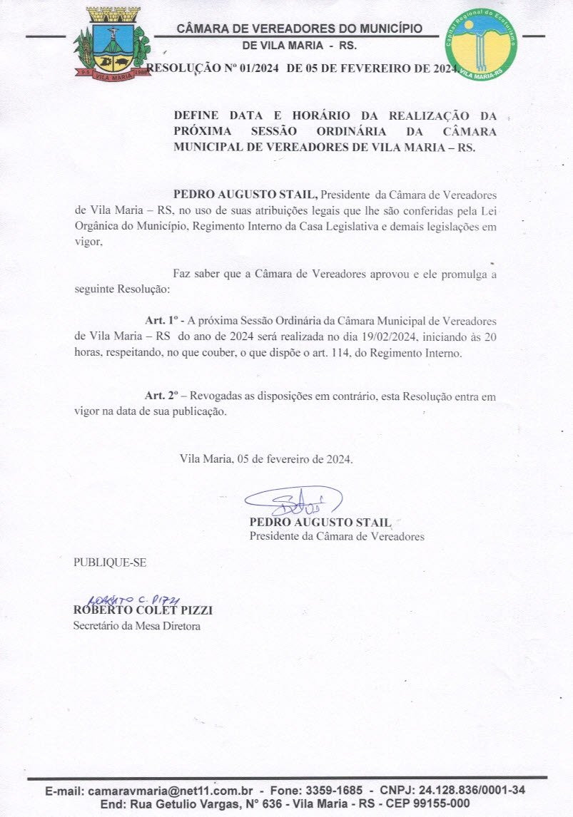 • Sessão Ordinária dia 19/02/2024.