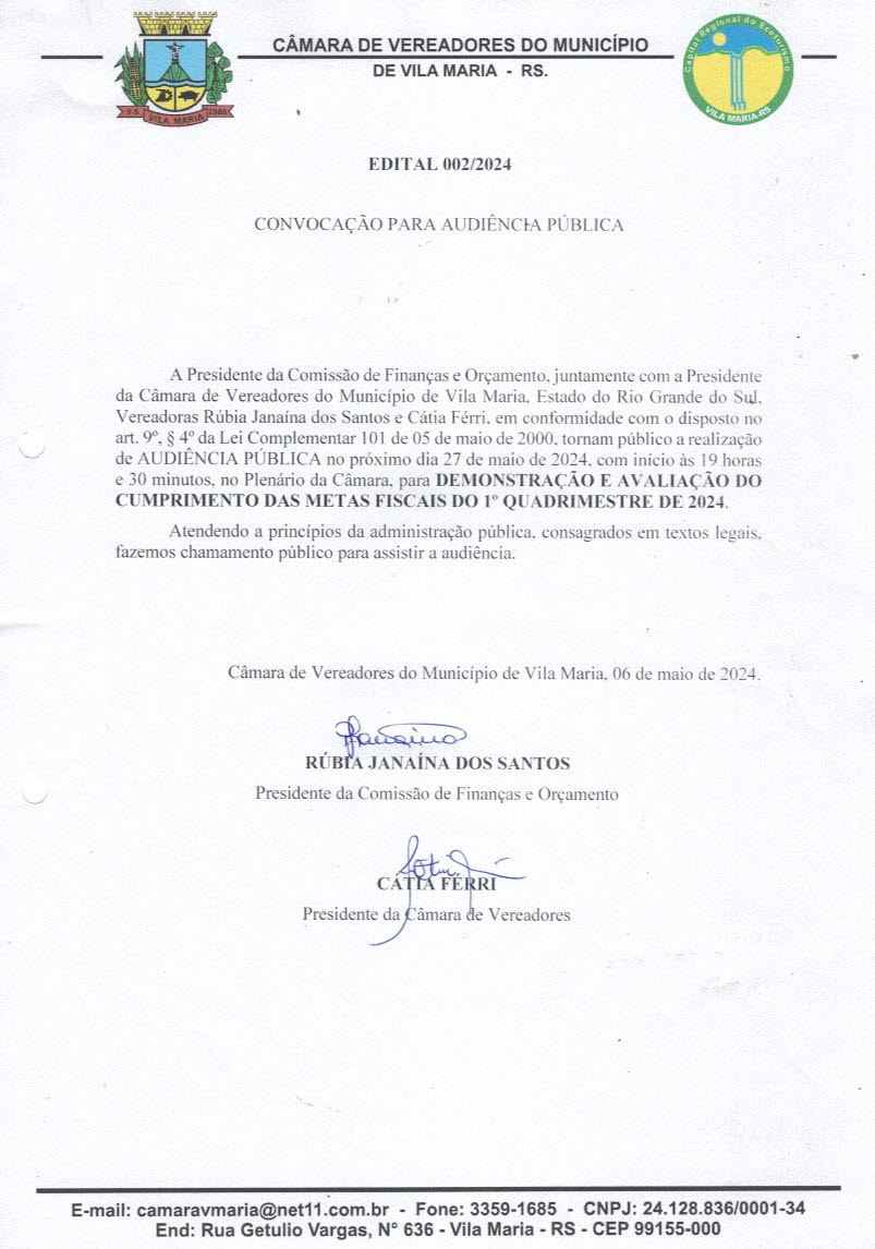 • Audiência Publica