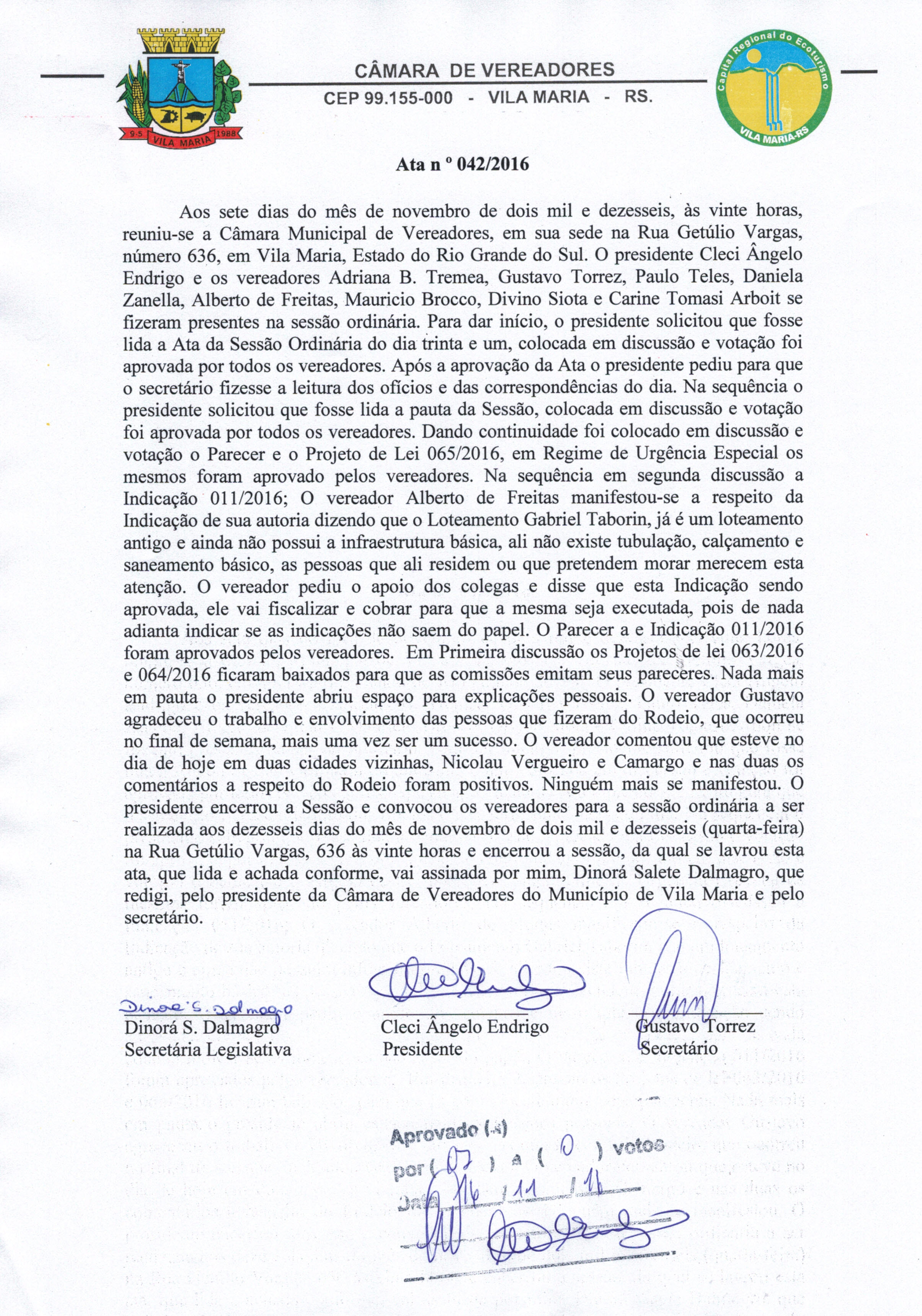 • Ata 042/2016 da Sessão do dia 07/11/2016, aprovada na Sessão do dia 16/11/2016.