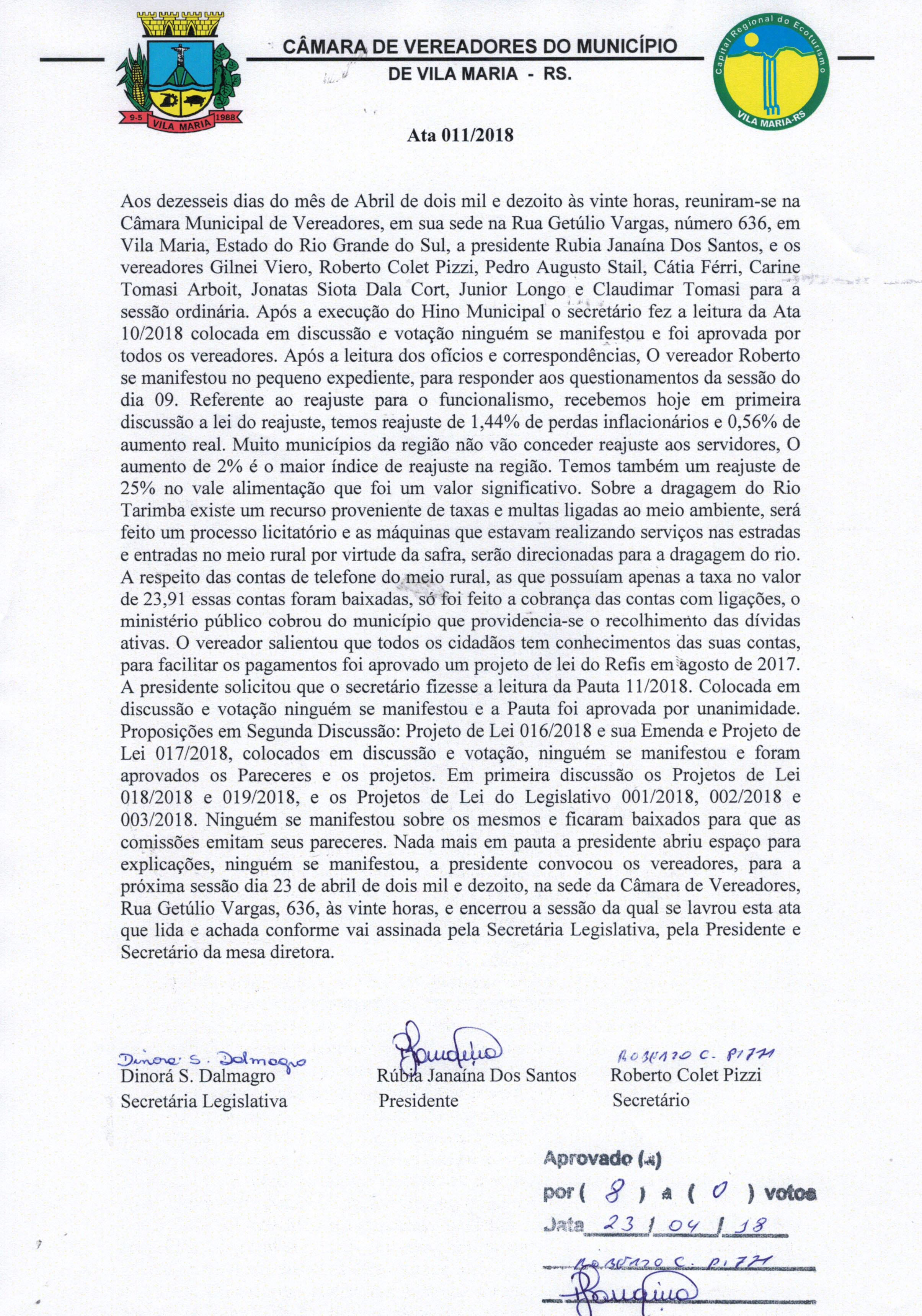 • Ata 11/2018 referente sessão do dia 16/04/2018 aprovada na sessão do dia 23/04/2018