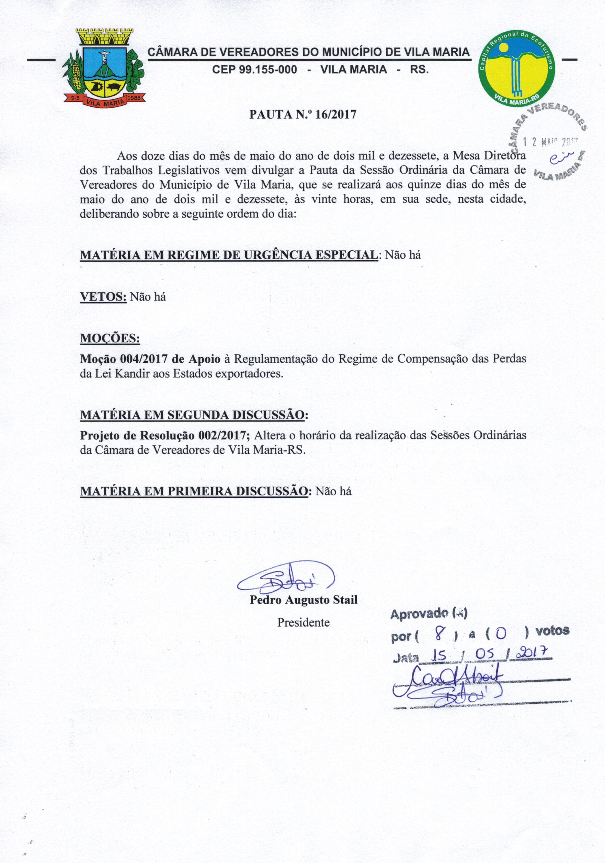 Pauta 016/2017 aprovada