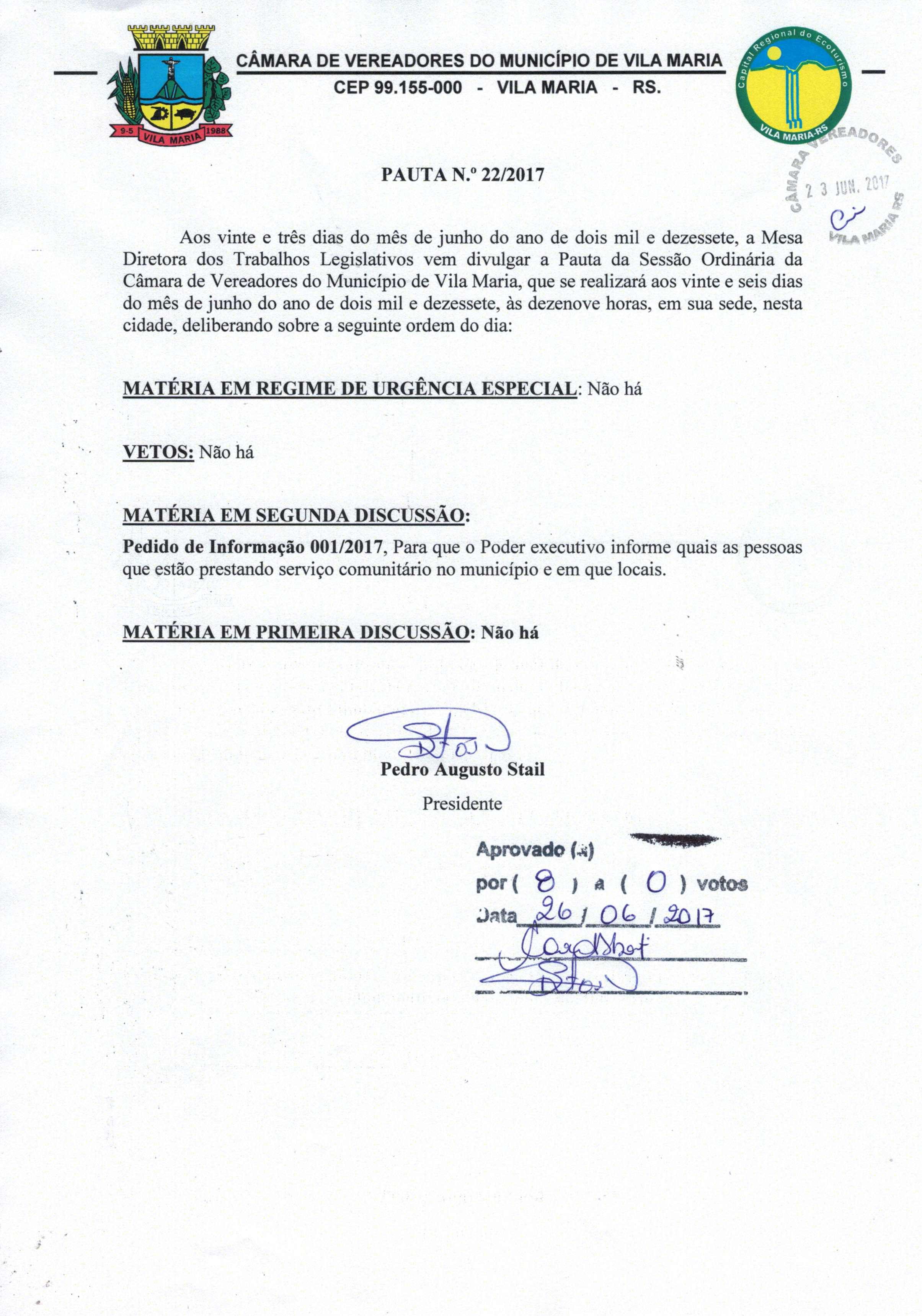 Pauta 022/2017 aprovada