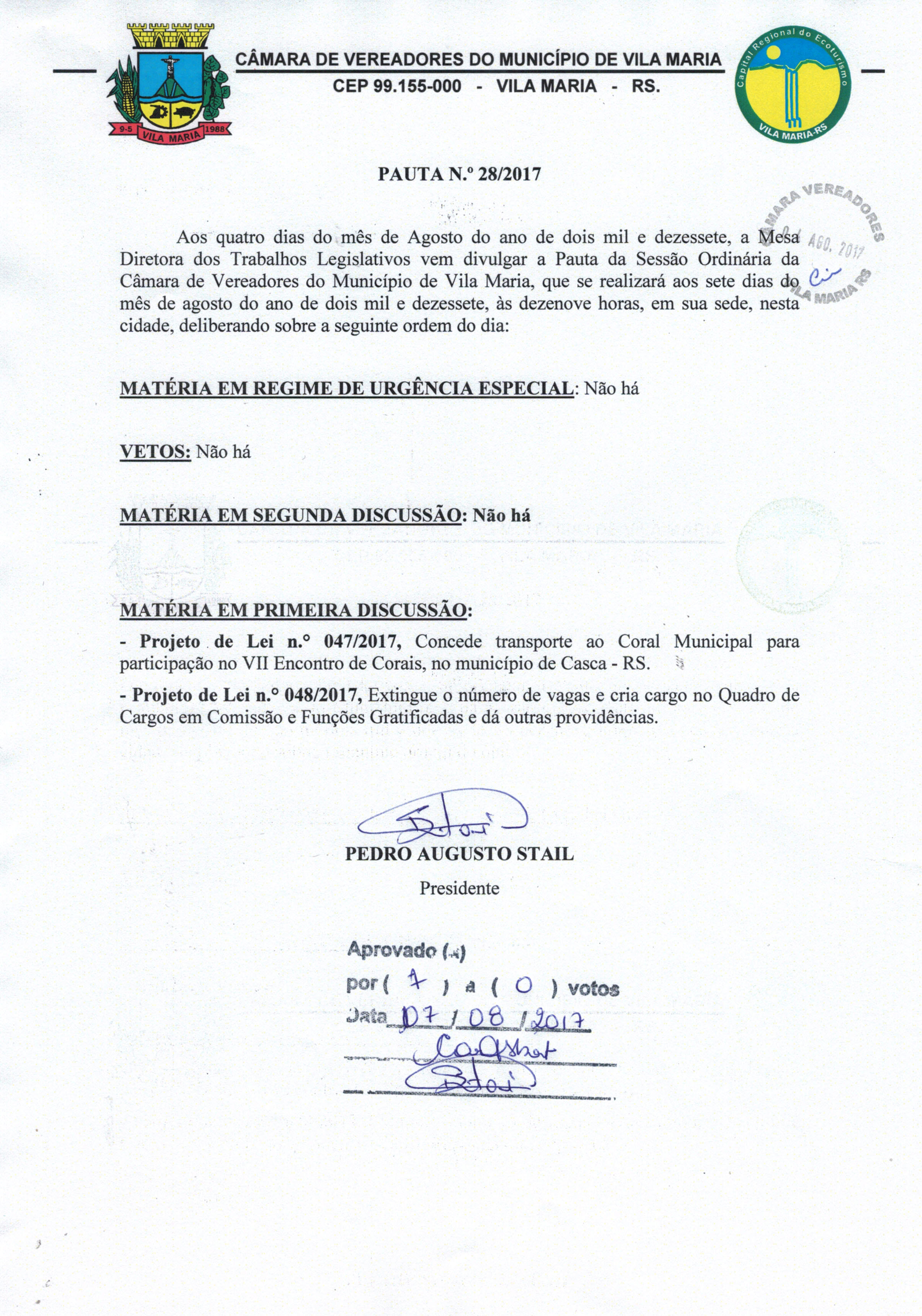 Pauta 028/2017 aprovada