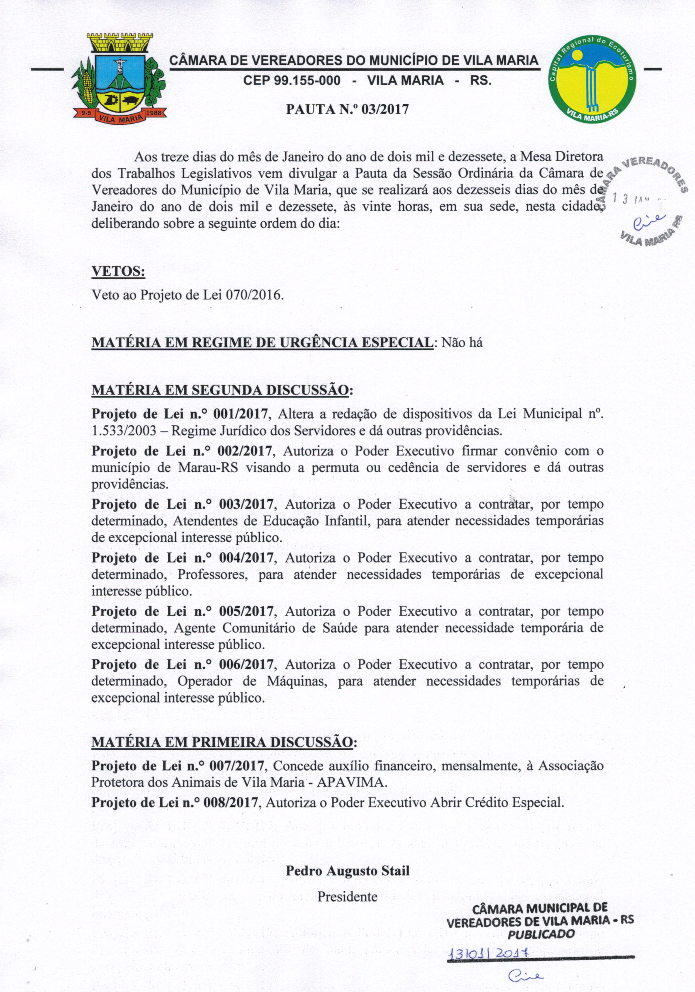 • Pauta 03/2017 para a sessão do dia 16/01/2017