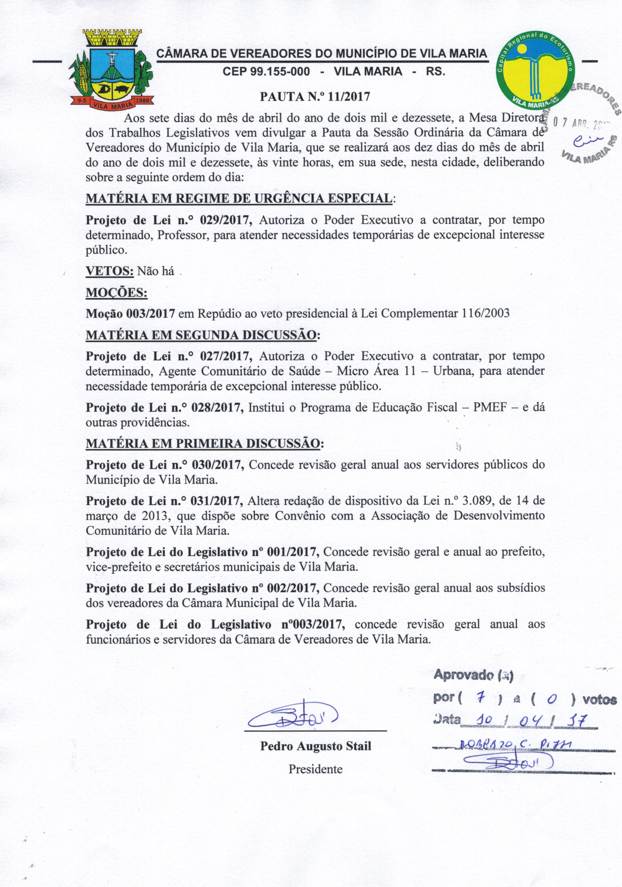 • Pauta 11/2017 aprovada na sessão do dia 10/04/2017