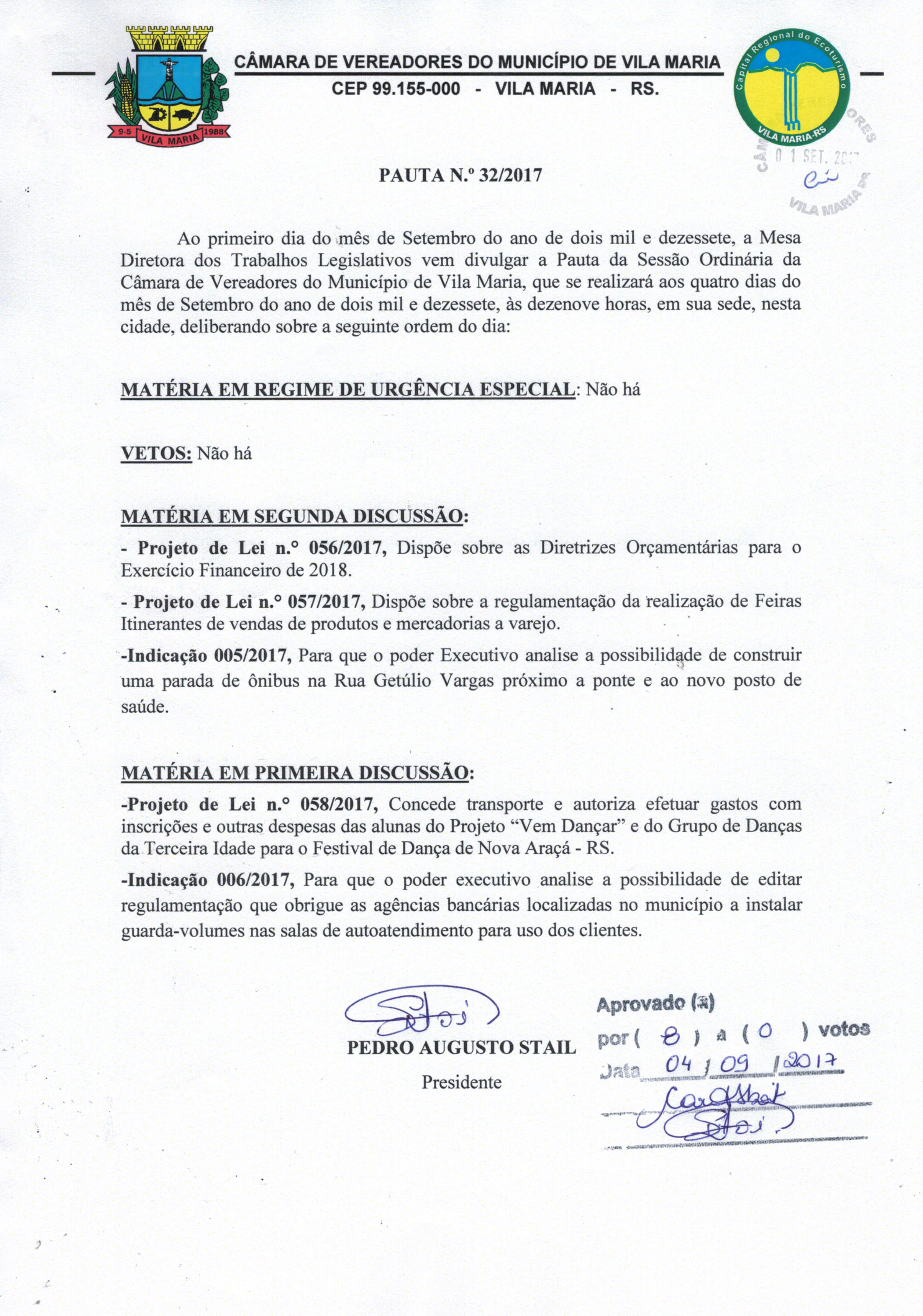 Pauta 32/2017 aprovada