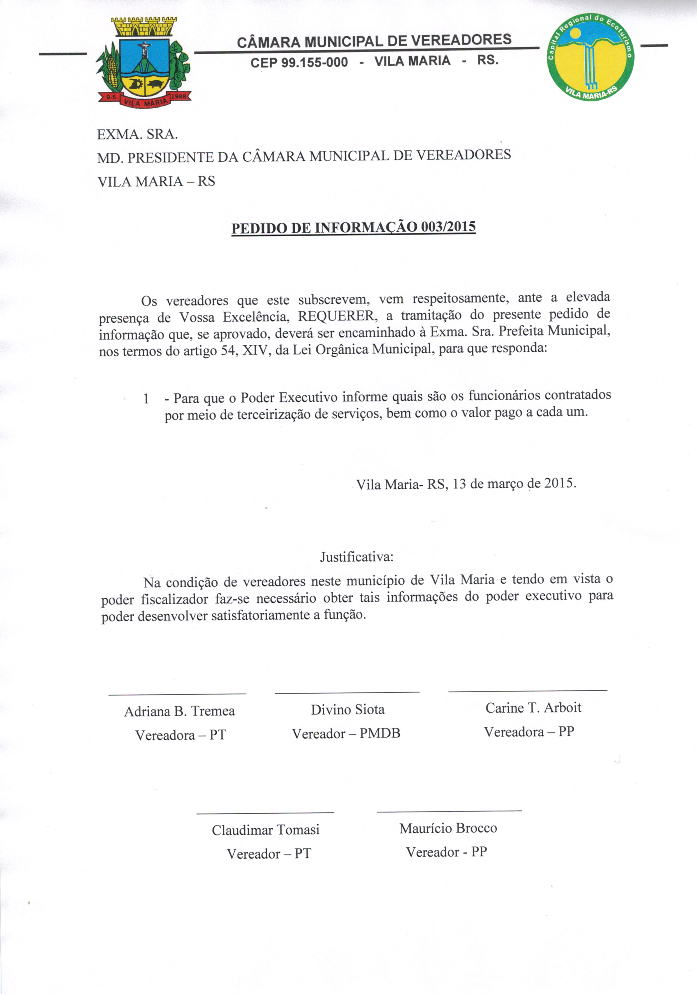 Pedido de Informação 003/2015